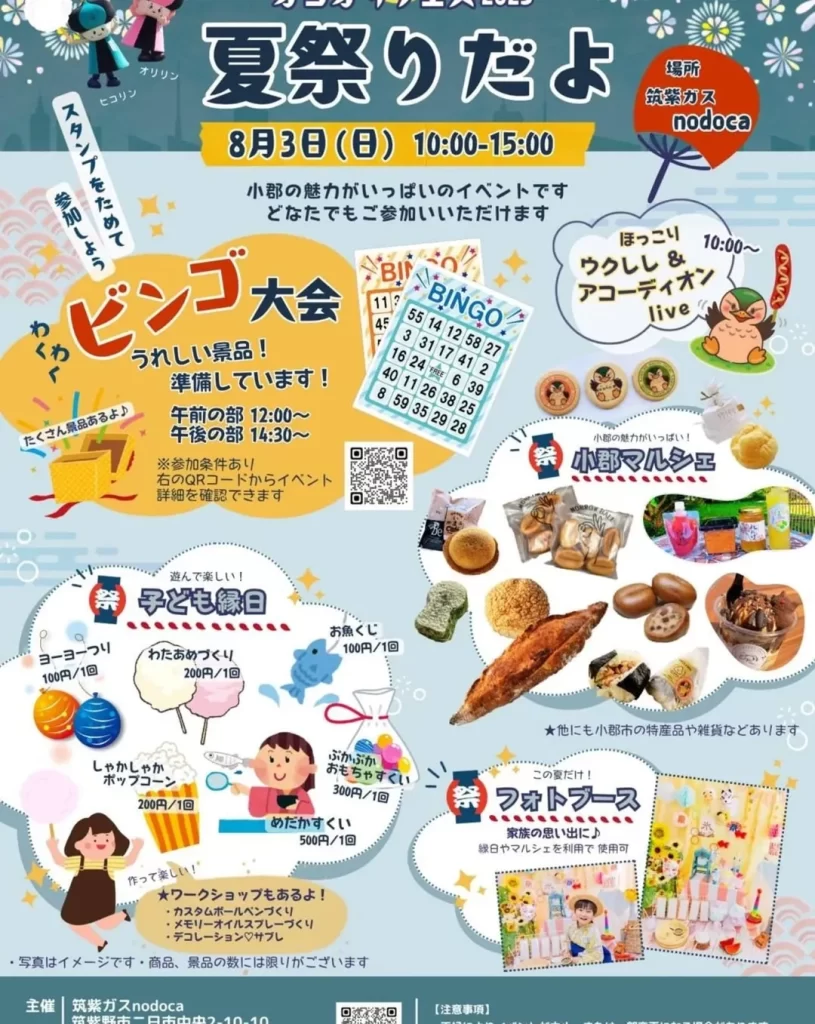8/3(日)は、JR二日市駅近くにある、筑紫ガスnodoca(筑紫野市二日市中央2-10-10)にて、旧七夕の季節に毎年恒例の「オゴオリフェス」を開催します♪